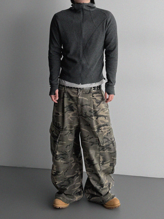 Slim waffle stitch hood zip-up
