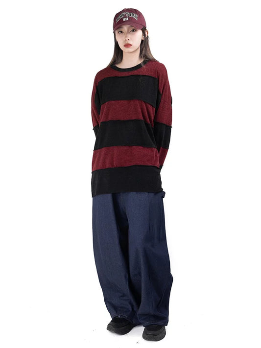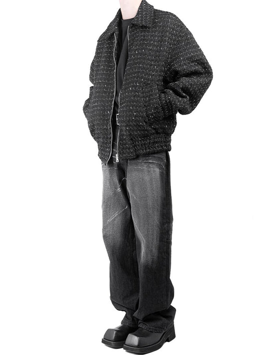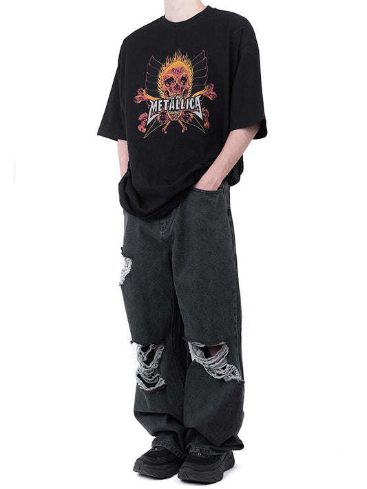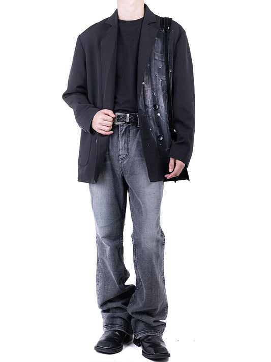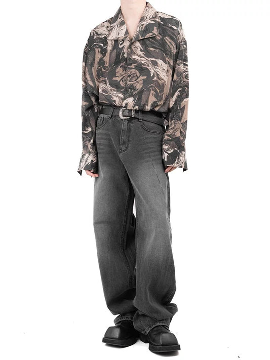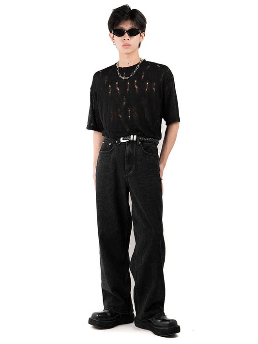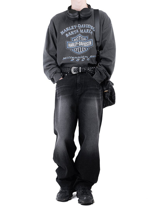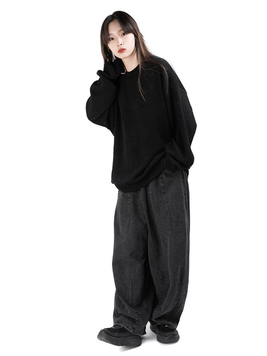 Smear Washing Dark Loose Denim Pants