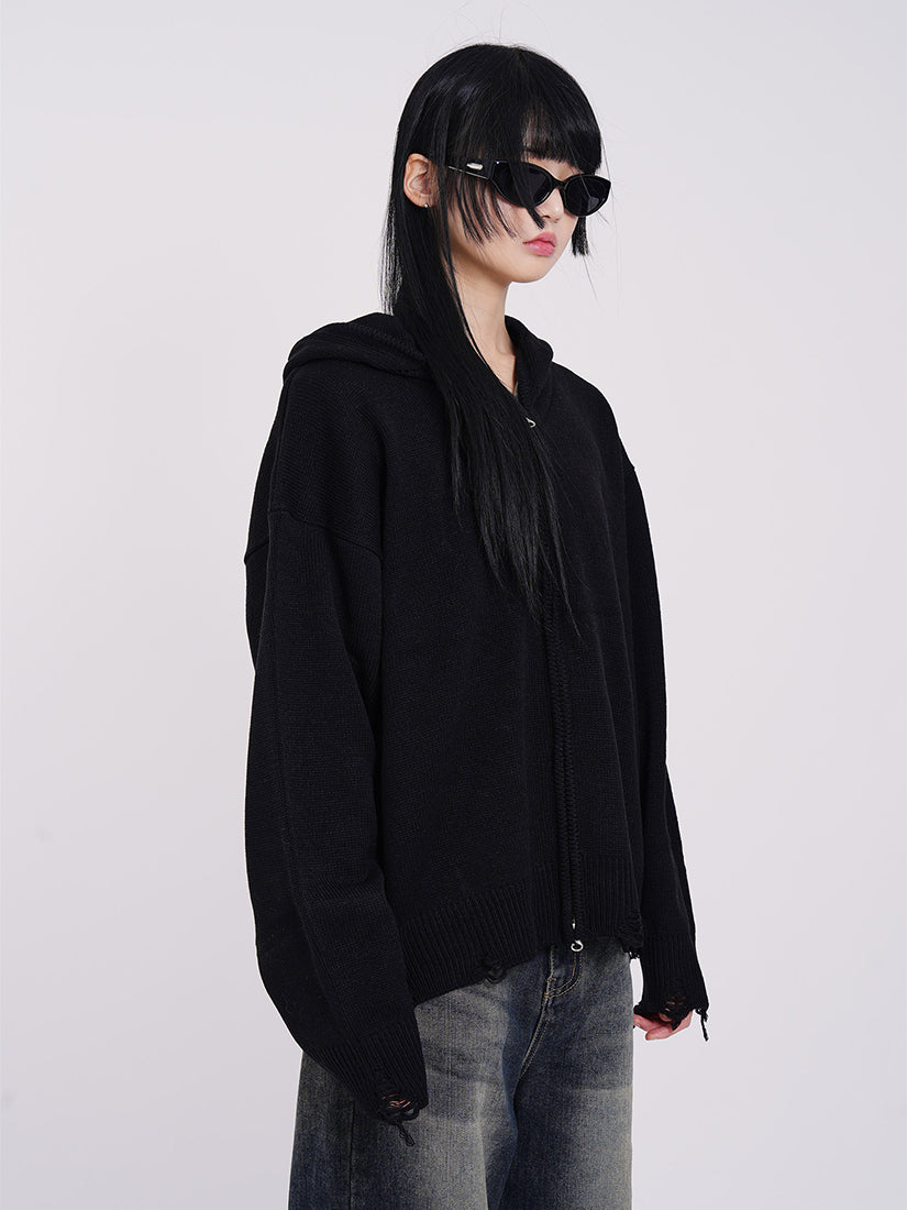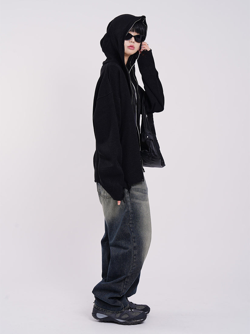 Worcester Damage Pull Up Knit Hooded Zip Up