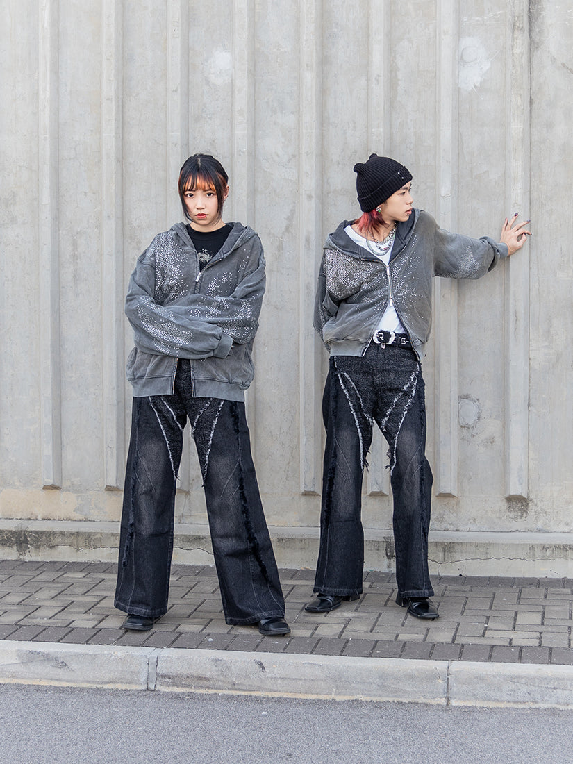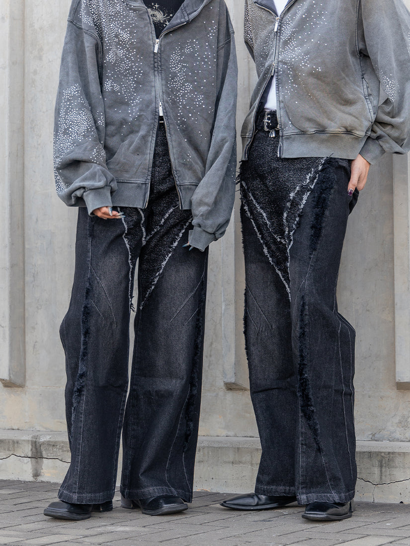 Vintage distressed plush patchwork wide-leg jeans
